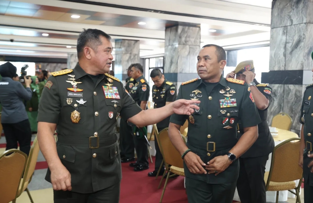 MRI – Jakarta | Komandan Kodiklatad Letjen TNI Mohamad Hasan menghadiri acara serah terima jabatan tiga jabatan strategis TNI AD, yaitu Pangdam Jaya, Pangdam IV/Diponegoro, dan Danpussenarhanud, yang dipimpin langsung oleh Kepala Staf Angkatan Darat (Kasad) Jenderal TNI Maruli Simanjuntak. Acara tersebut berlangsung di Aula Jenderal Besar A.H Nasution Mabesad pada Kamis (3/7/2025).