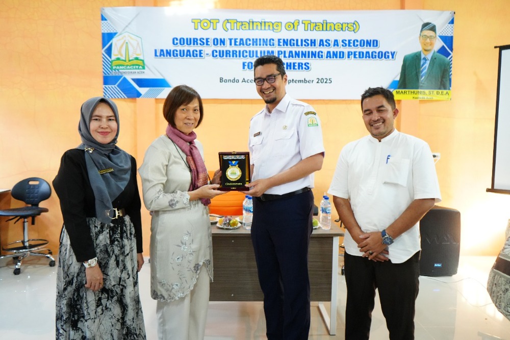 Kepala Dinas Pendidikan Aceh, Marthunis, S.T., D.E.A., resmi menutup Training of Trainer (TOT) Course on Teaching English As a Second Language - Curriculum Planning and Pedagogy for Teachers di SMK Negeri 5 Telkom Banda Aceh.