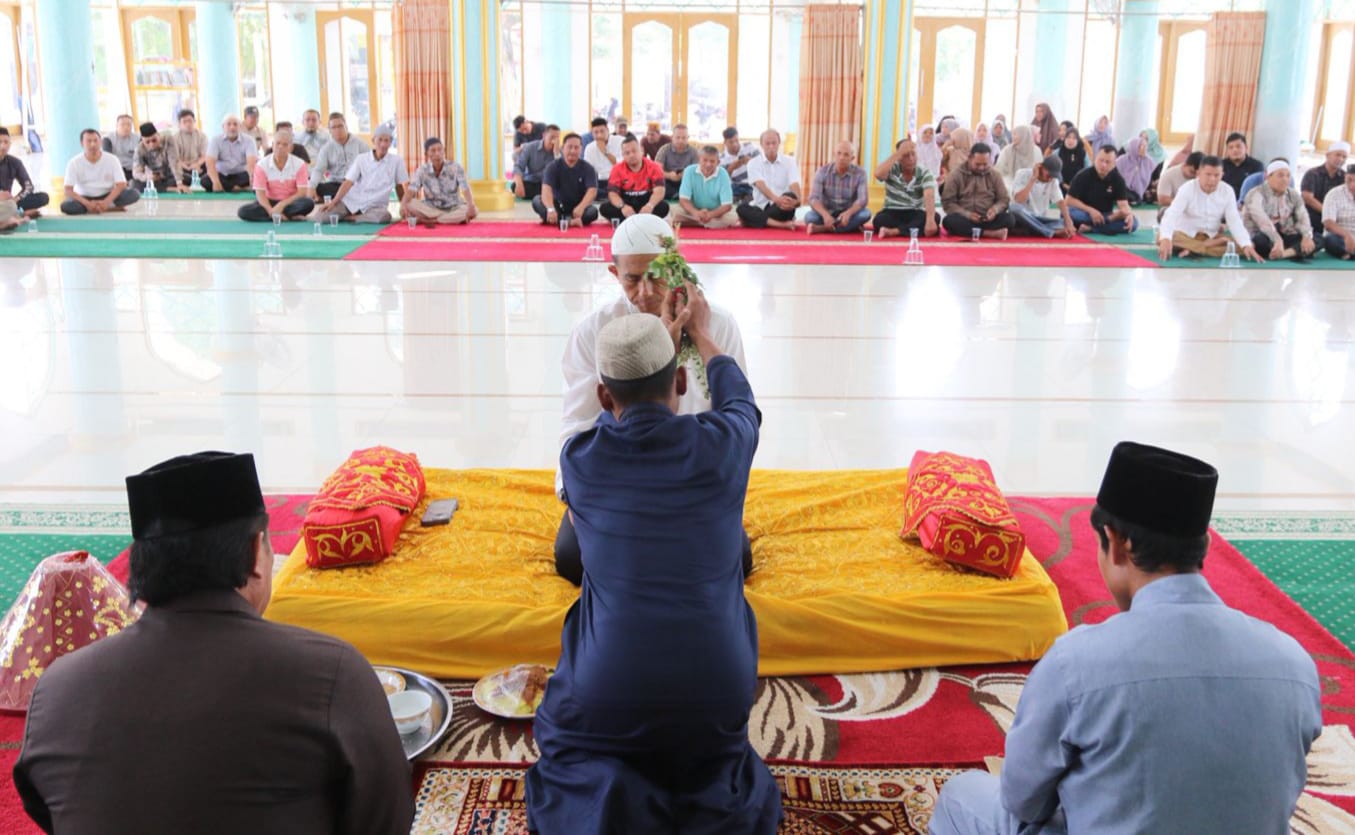 MRI – Banda Aceh | Kapolda Aceh Brigjen Pol Marzuki Ali Basyah mendapat prosesi tepung tawar (peusijuek) dari warga Lampaseh Kota. Kegiatan tersebut berlangsung saat Kapolda bersilaturahmi dengan masyarakat di Masjid Bani Salim, Gampong Lampaseh Kota, Kecamatan Kutaraja, Kota Banda Aceh, Minggu, 7 September 2025.