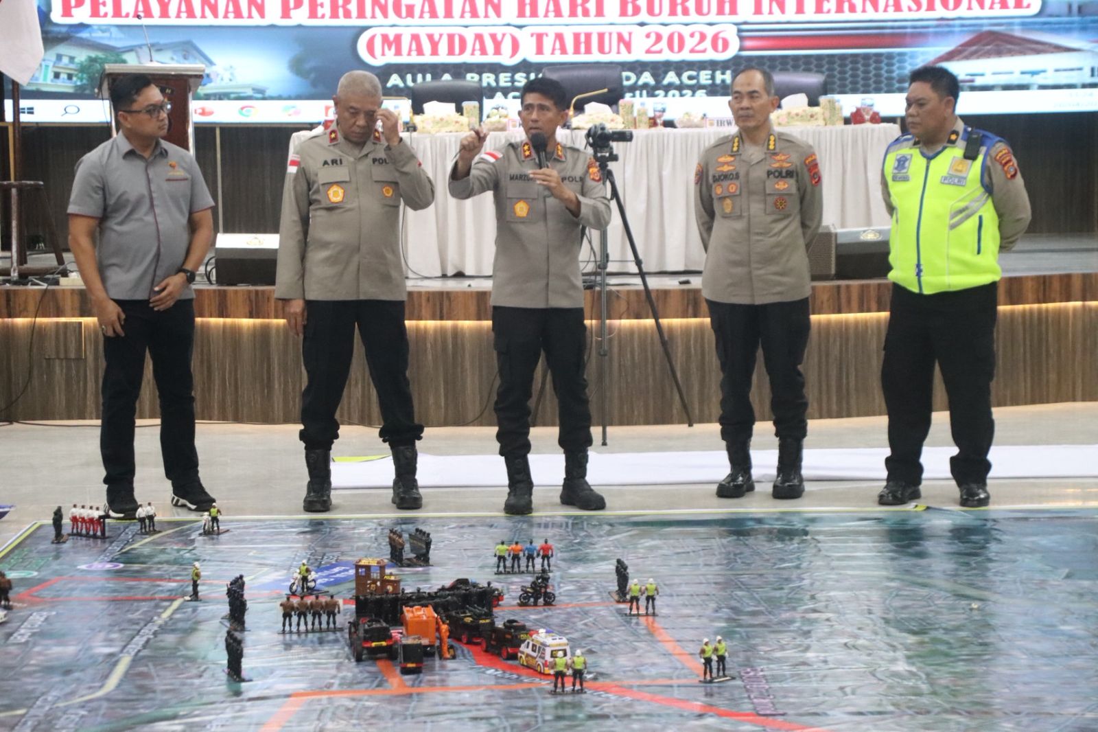 Kabid Humas Polda Aceh, Kombes Pol. Joko Krisdiyanto, S.I.K., menyampaikan bahwa kegiatan ini merupakan bagian dari langkah strategis Polda Aceh dalam mengantisipasi potensi gangguan keamanan dan ketertiban masyarakat (kamtibmas) yang mungkin terjadi saat peringatan May Day 2026.