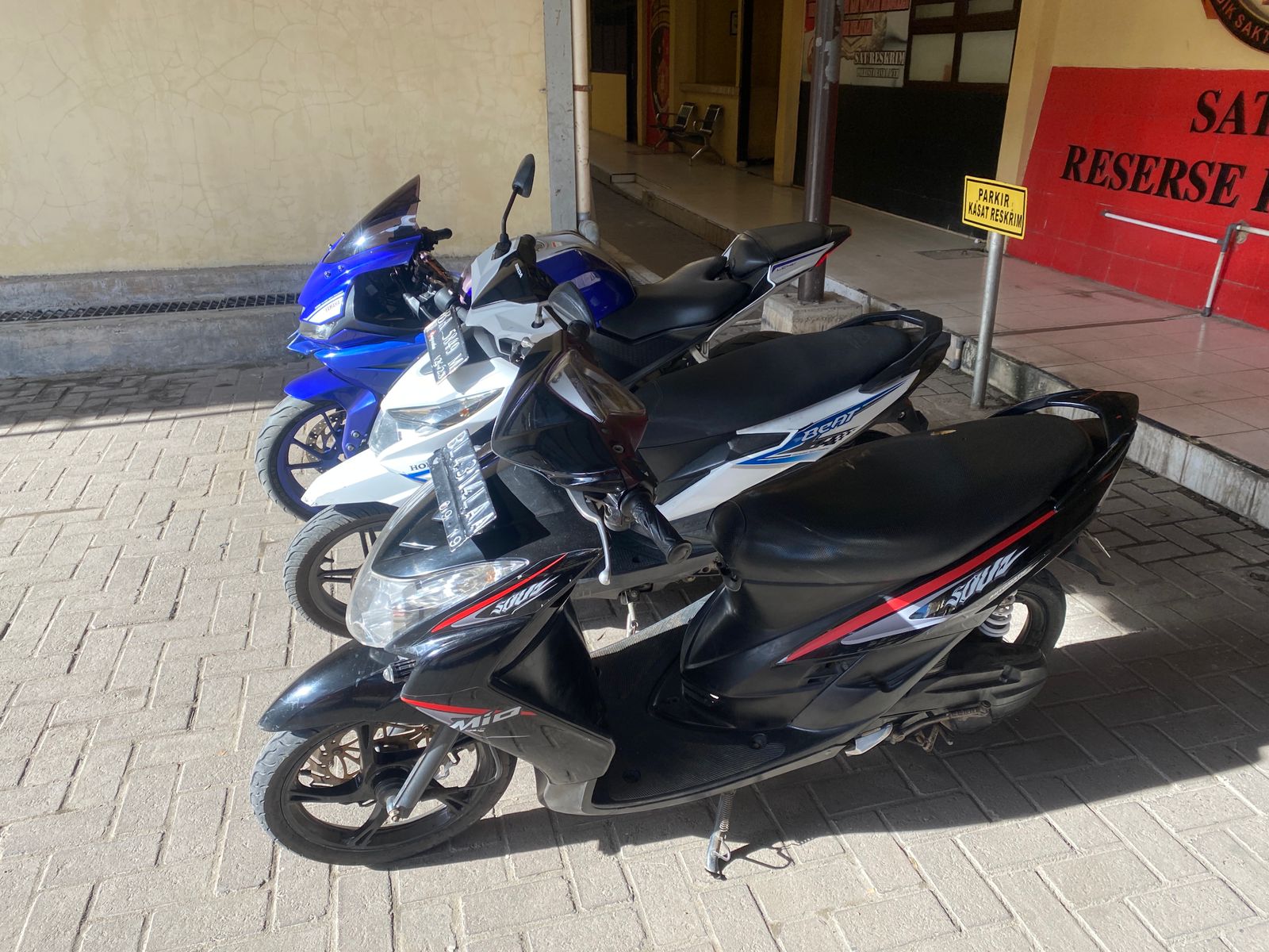 Petugas selain mengamankan pelaku, juga mengamankan tiga unit sepeda motor diantaranya, sepeda motor jenis Yamaha R15 warna Biru,
